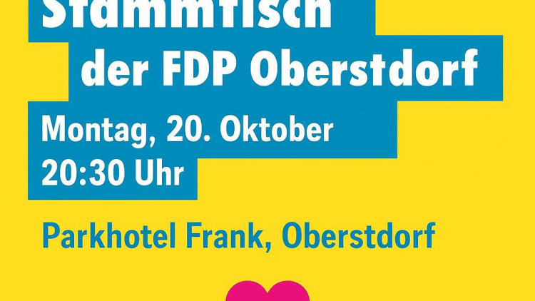 Die FDP Oberstdorf freut sich über zahlreiches Erscheinen und lebhafte Diskussionen. Eine Anmeldung ist nicht erforderlich.